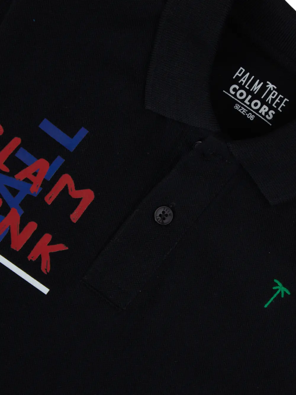 Gini And Jony Boys Black Typography Print Cotton Polo T-Shirt Half Sleeves