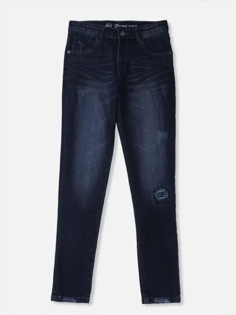 Gini And Jony Boys Dark Blue Distressed Denim Jeans Fixed Waist