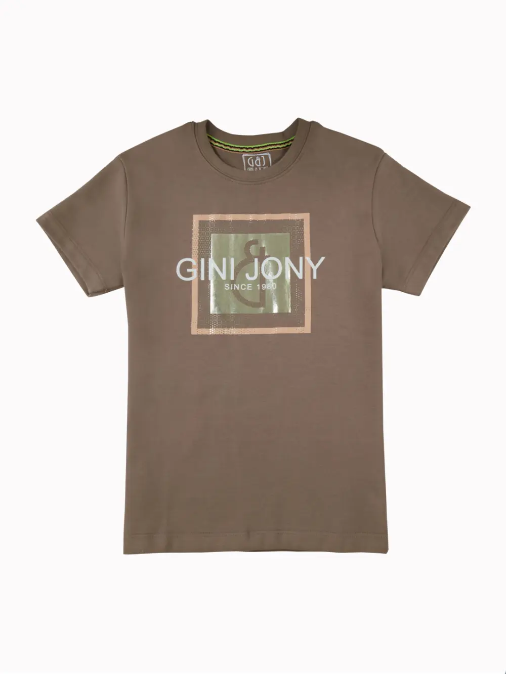 Gini And Jony Boys Khaki Graphic Print Cotton T-Shirt Half Sleeves