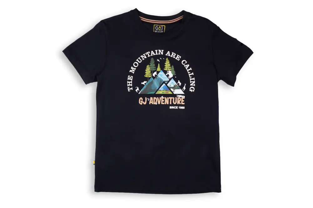Gini and Jony encourages him to embark on a mountain adventure with this Boys’ Navy Blue Graphic Print T-Shirt. This tee features a vibrant ‘GJ Adventure’ graphic print and a call to the wild. It has cool Half Sleeves, a comfortable Round Neck, and a simple Pull-On closure. Designed for a non-distressed Regular Fit.