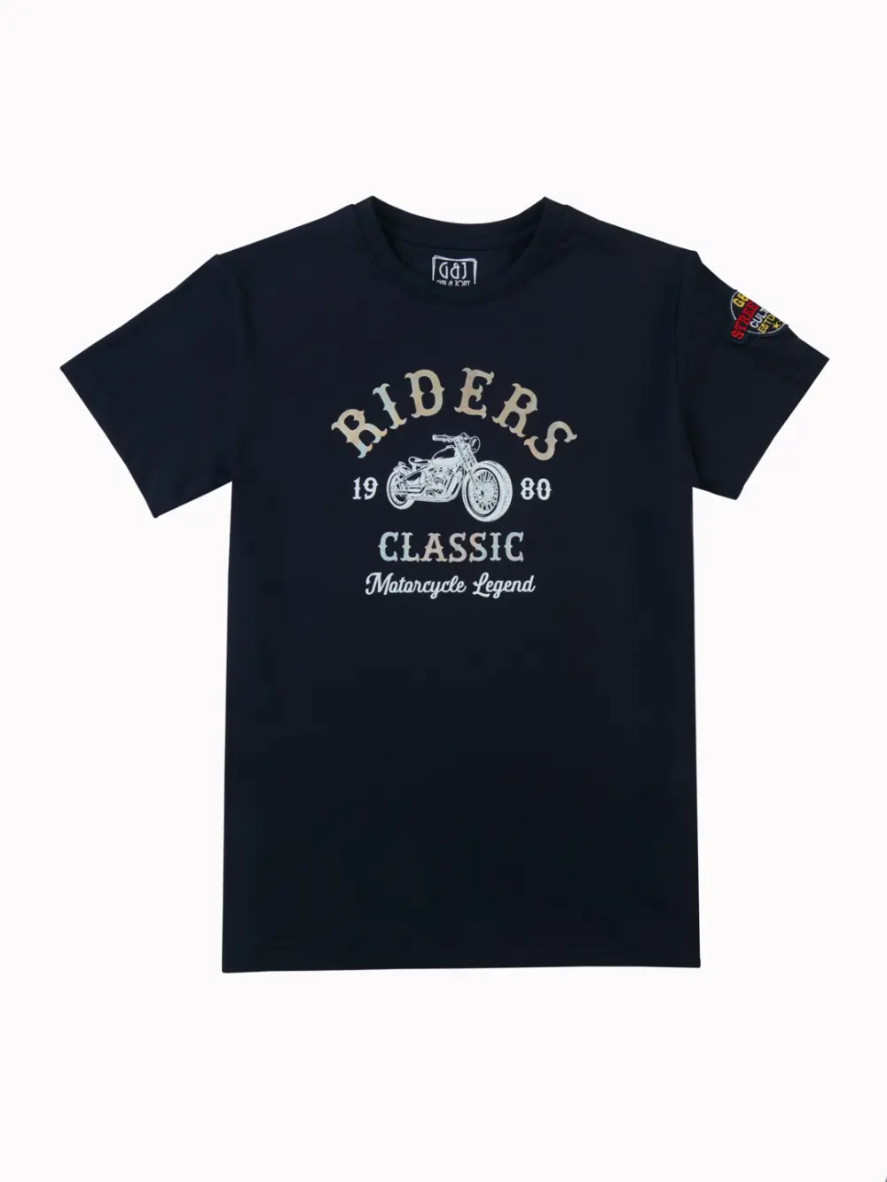 Gini and Jony creates a rider’s dream with this Boys’ Navy Blue Graphic Print T-Shirt. This tee features classic Half Sleeves, a comfortable Round Neck, a bold vintage-inspired motorcycle graphic on the chest, and a unique badge detail on the sleeve. Designed for a non-distressed Regular Fit, it features a simple Pull-On closure.