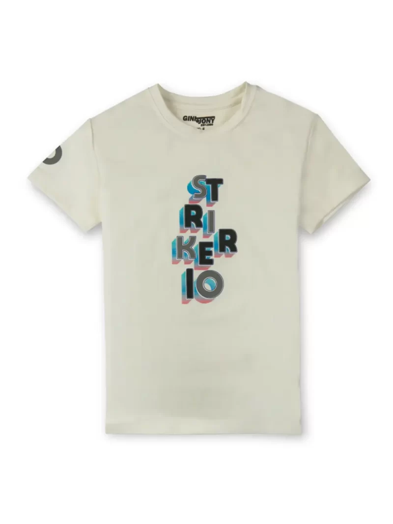 Gini And Jony Boys White Graphic Print Cotton T-Shirt Half Sleeves