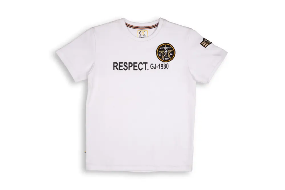 Gini and Jony makes an impactful statement with this Boys’ White Typography T-Shirt. This sporty tee features classic Half Sleeves, a comfortable Round Neck, and “RESPECT” typographic and stylized patch embroidery on the chest and sleeve. Designed for a non-distressed Regular Fit, it features a simple Pull-On closure.