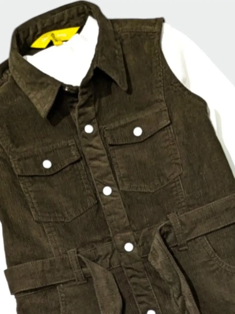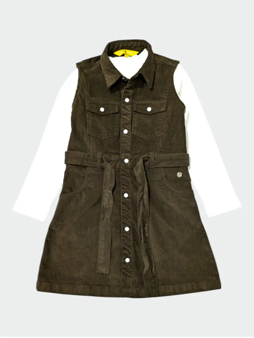 Gini And Jony Girls Olive Solid Corduroy Dress Full Sleeves