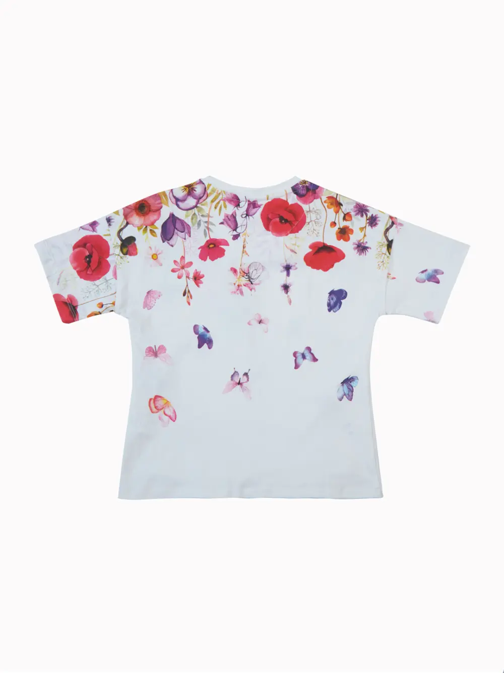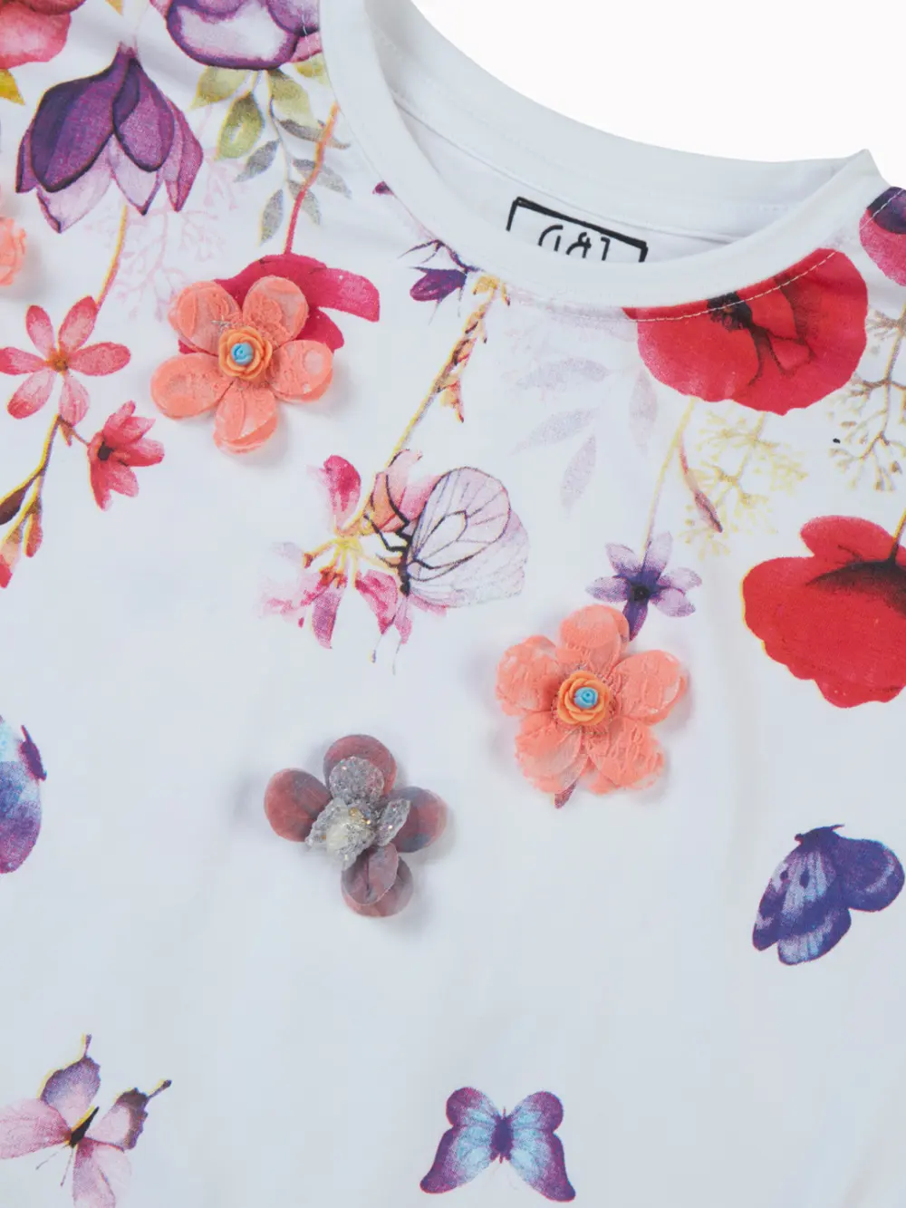 Gini And Jony Girls White Applique Cotton Knits Top Half Sleeves