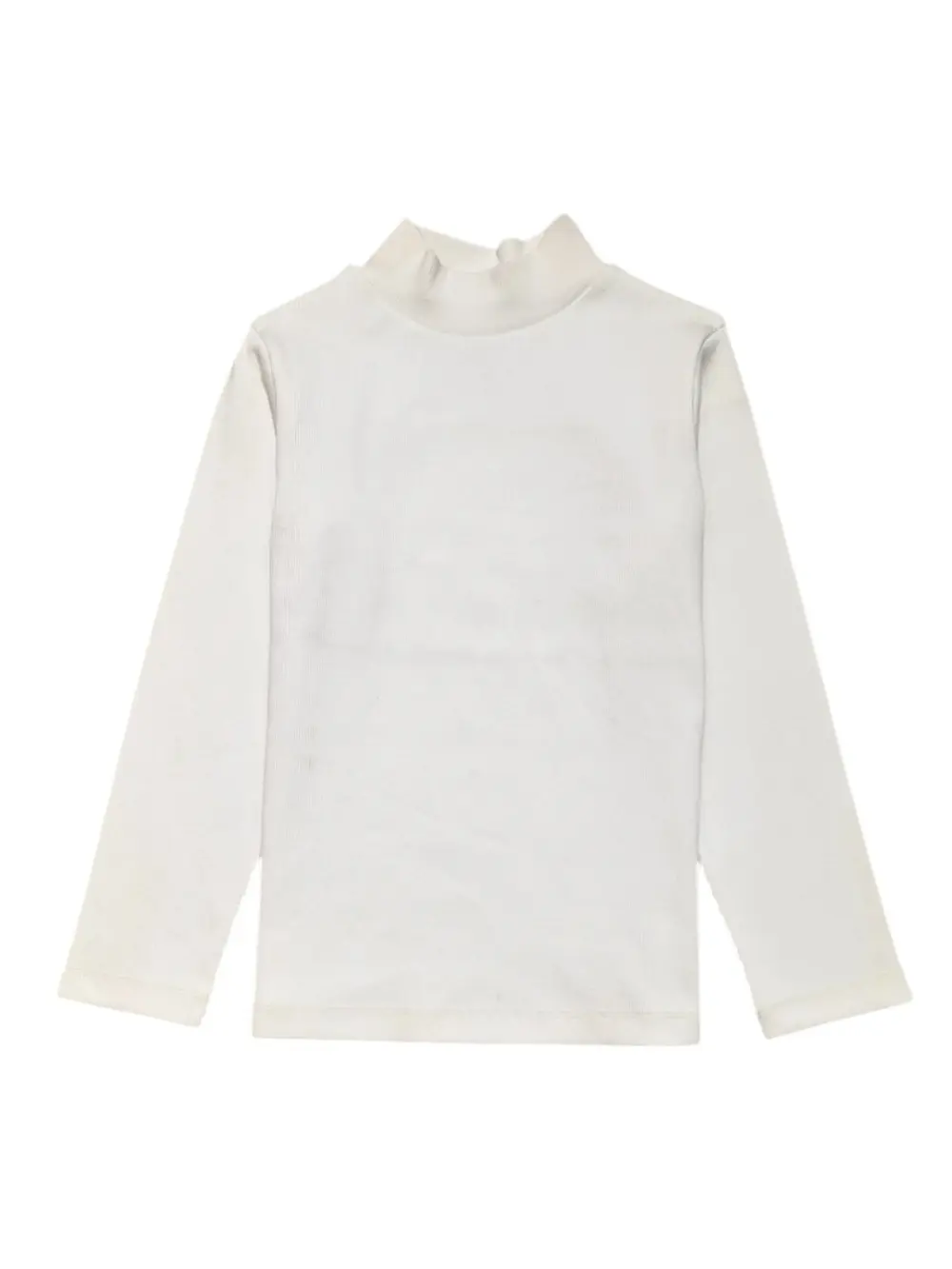 Gini and Jony Girls White Solid Skivy is a regular-fit, long-sleeve tee with a turtleneck and a pull-on closure. A crisp white skivy is a versatile and stylish layering piece for any occasion.