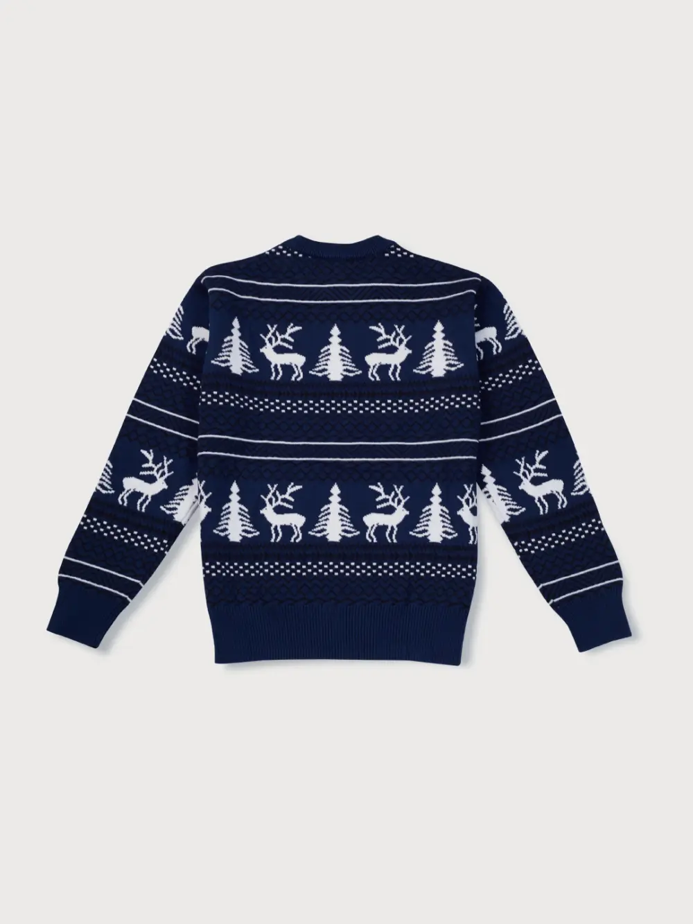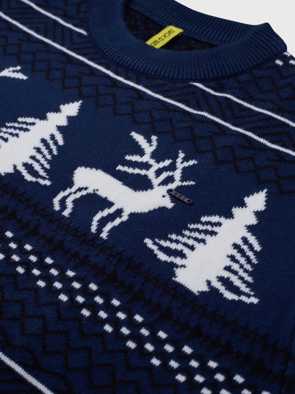 Gini & Jony Boys Navy Printed Woven Full Sleeves Sweater