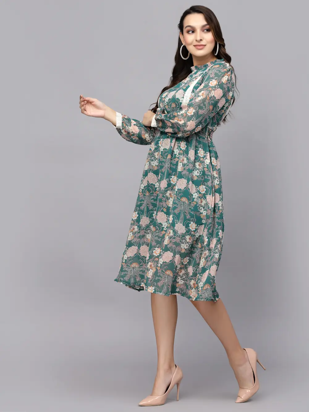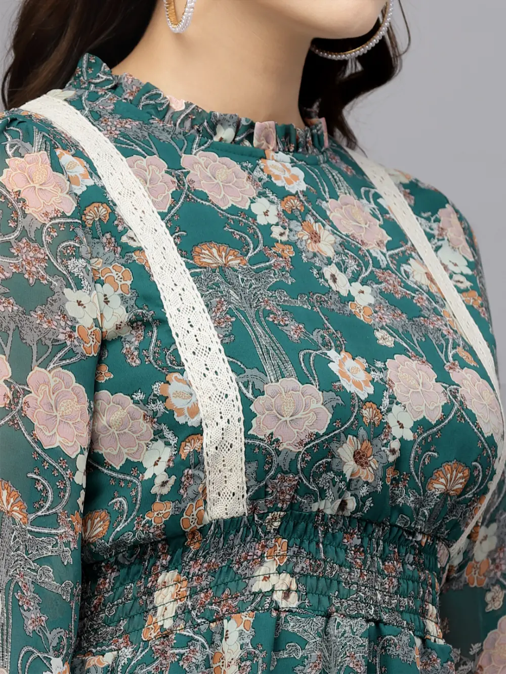 Stay effortlessly chic in this Mafadeny Women’s Floral Print High Neck Midi Dress. Featuring lace detailing and a flared hemline, this piece adds timeless elegance to your everyday style.