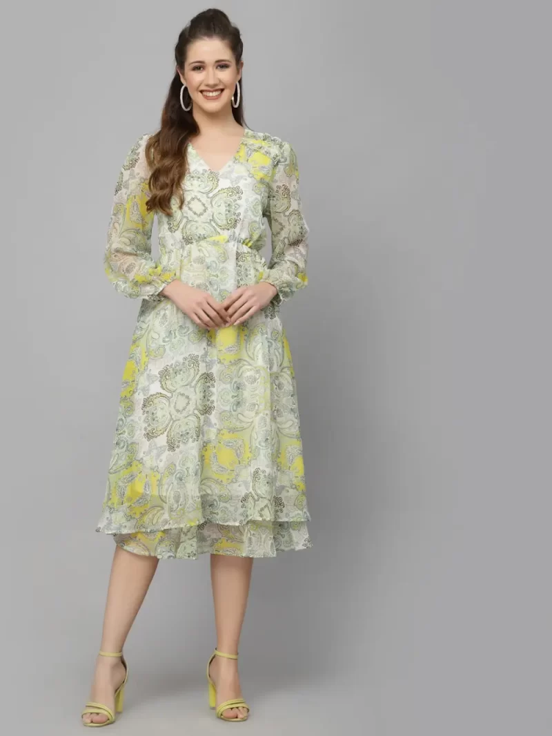 Add a touch of charm to your everyday style with this Mafadeny Women’s Paisley Print Flared Midi Dress. Featuring a V-neckline, full sleeves, and a graceful flowy silhouette, this dress is perfect for both casual and semi-formal occasions.