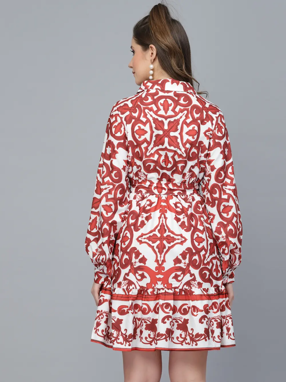 Flaunt your style with this red and white wrap dress from Mafadeny. Made from high quality fabric, this dress features a shirt collar, full sleeves and printed pattern, it possesses a stylish enchantment. Team this dress with a pair of heels for a stylish look.