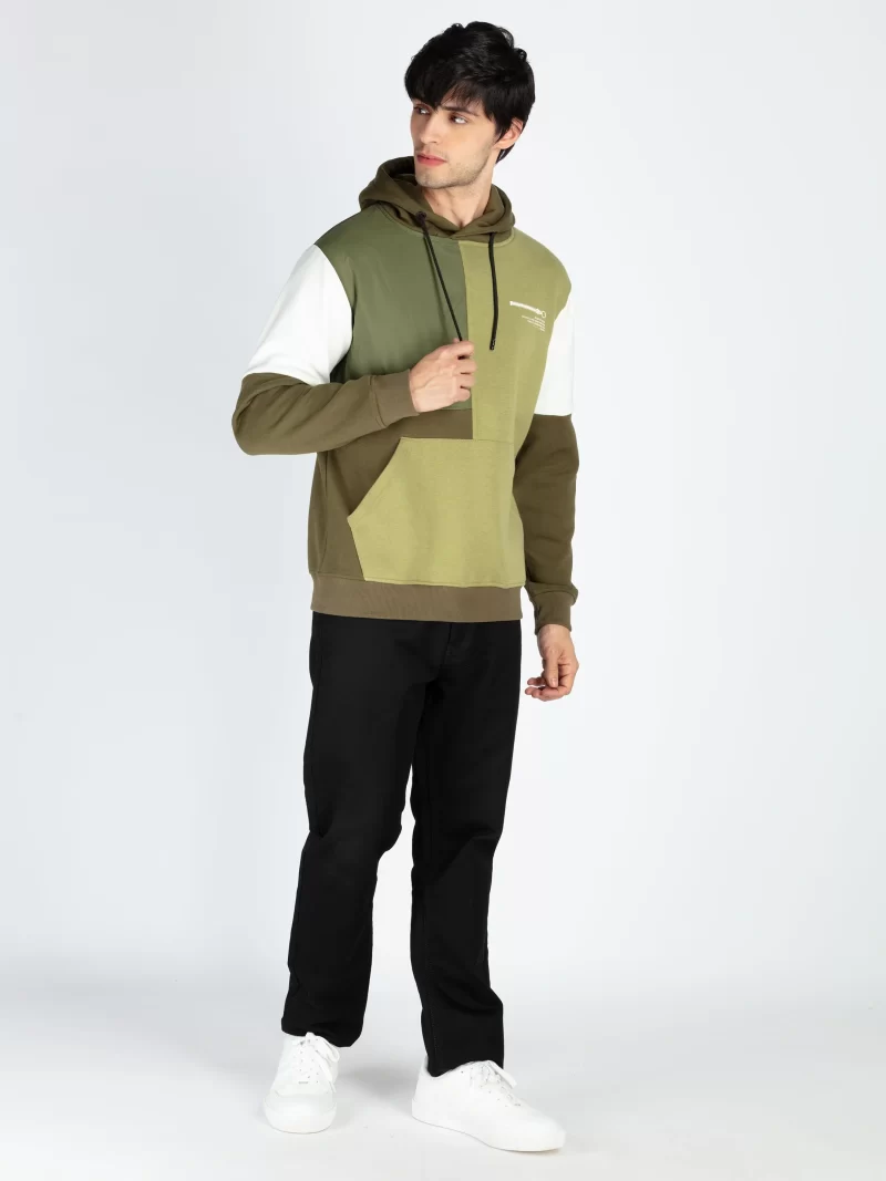 Mens Colorblocked Full Sleeve Hooded Sweatshirt