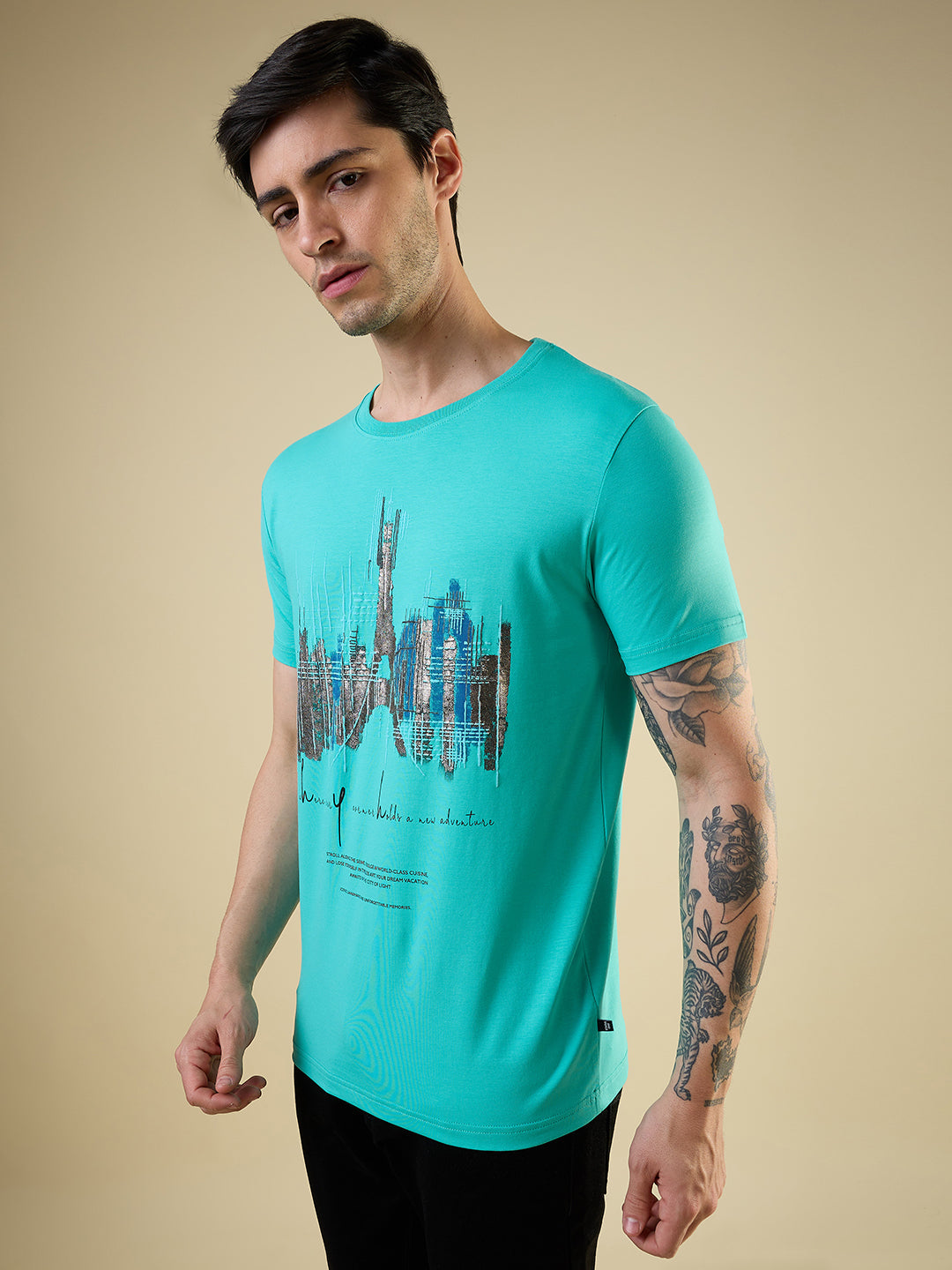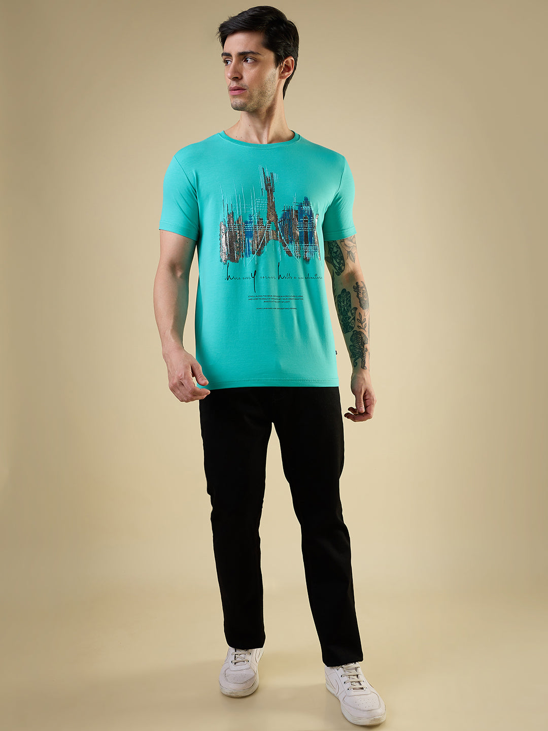 Mens Full-Front Graphic Printed Half Sleeves Regular Fit T-Shirt