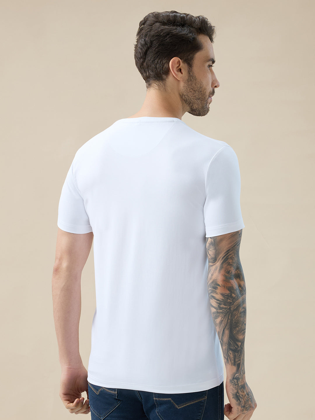 Status Quo Men’s Chest Brand Logo Graphic Print Round Neck Half Sleeve Regular Fit T-Shirt