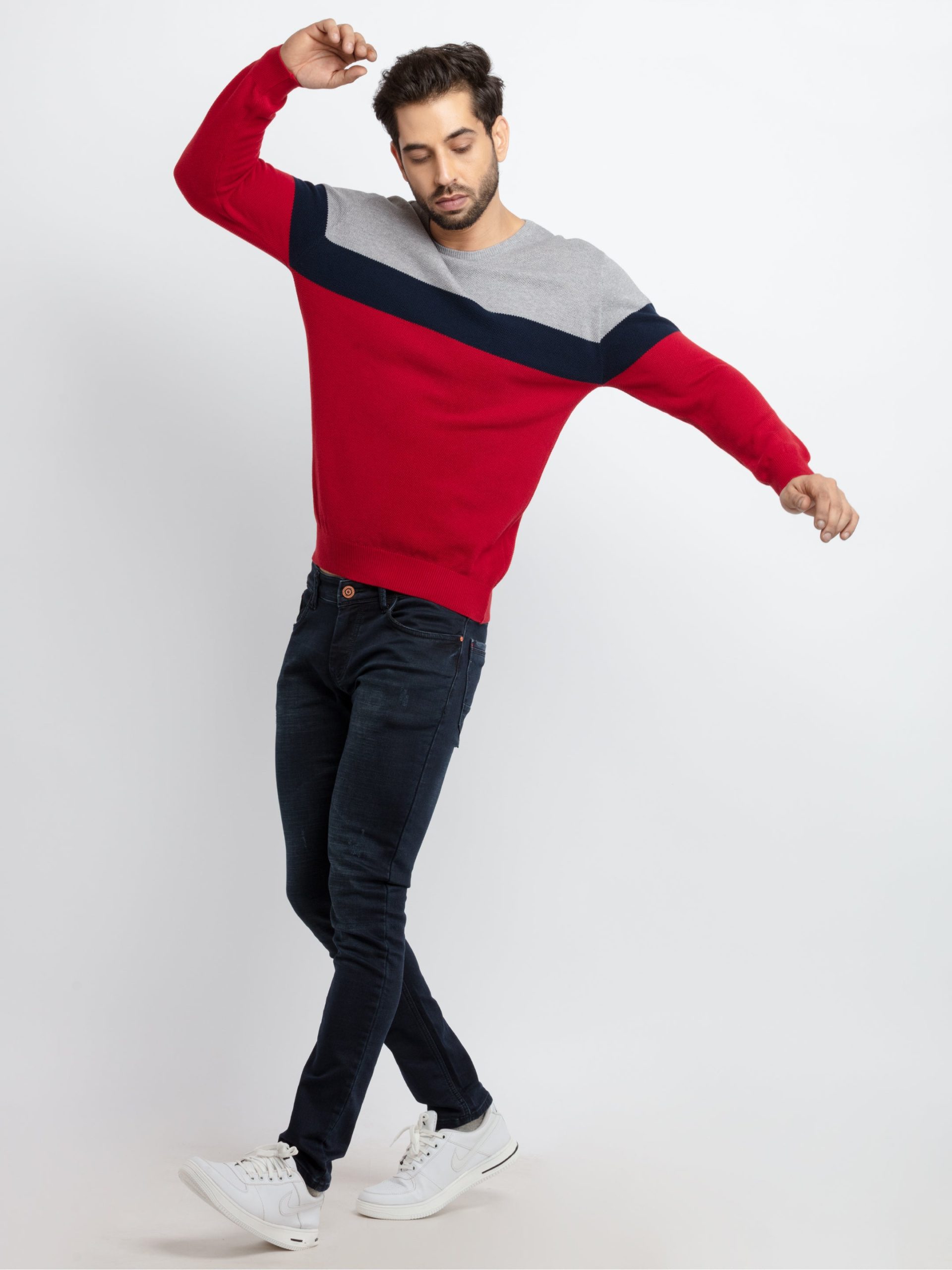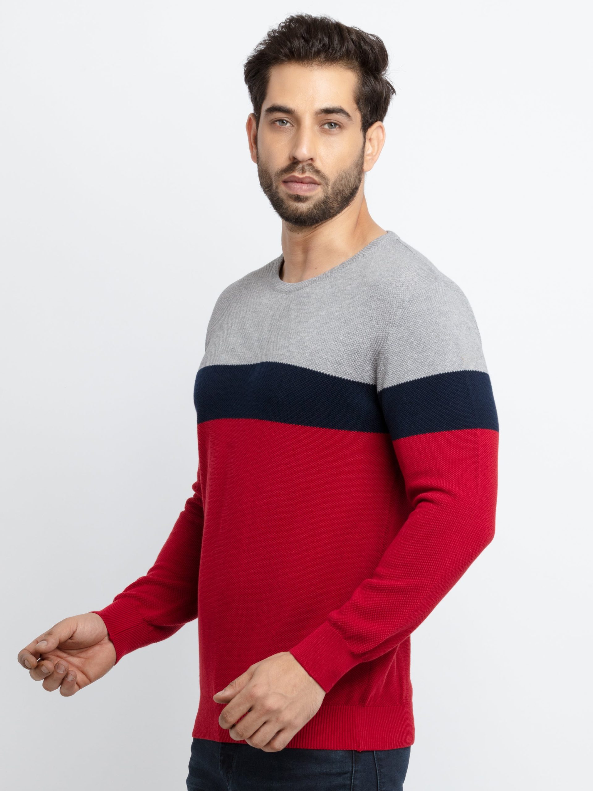 Status Quo Men’s Colour Blocking Round Neck Sweater