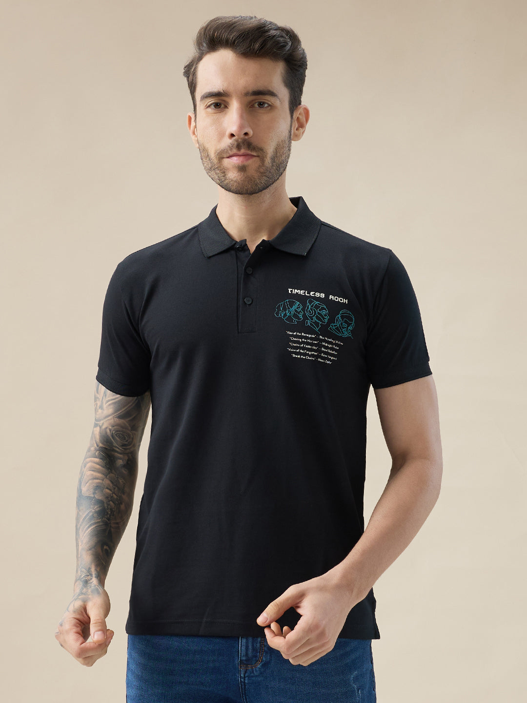 Status Quo Men’S Half Sleeve Typography Polo T-Shirt With Back And Chest Print
