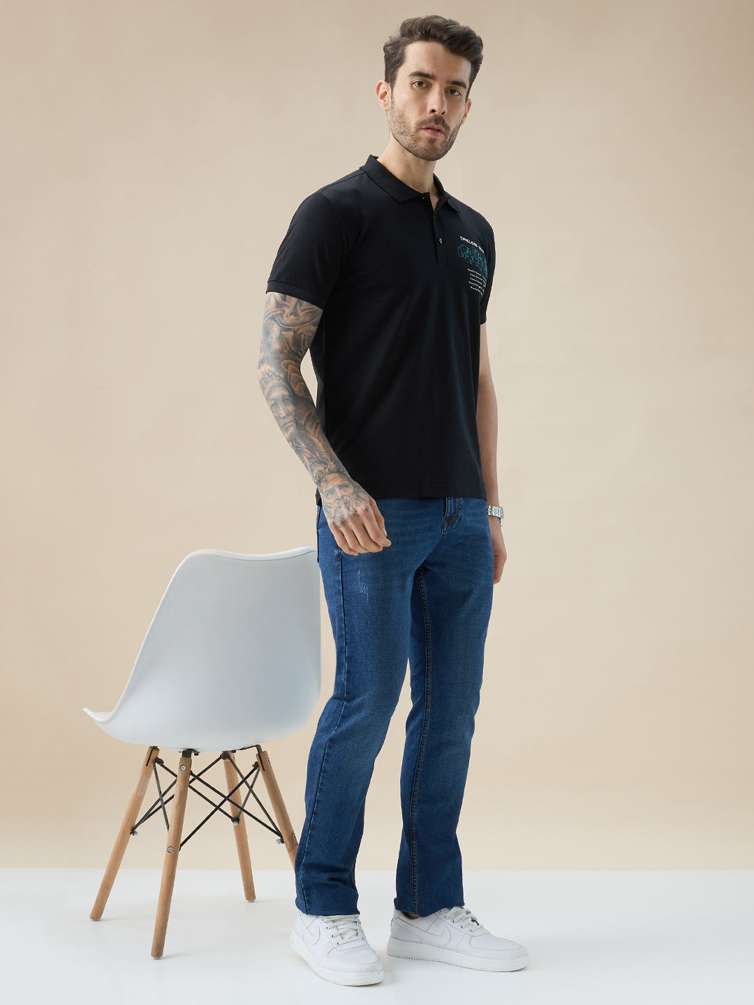 Status Quo Men’s Half Sleeve Typography Polo T-Shirt with Back and Chest Print