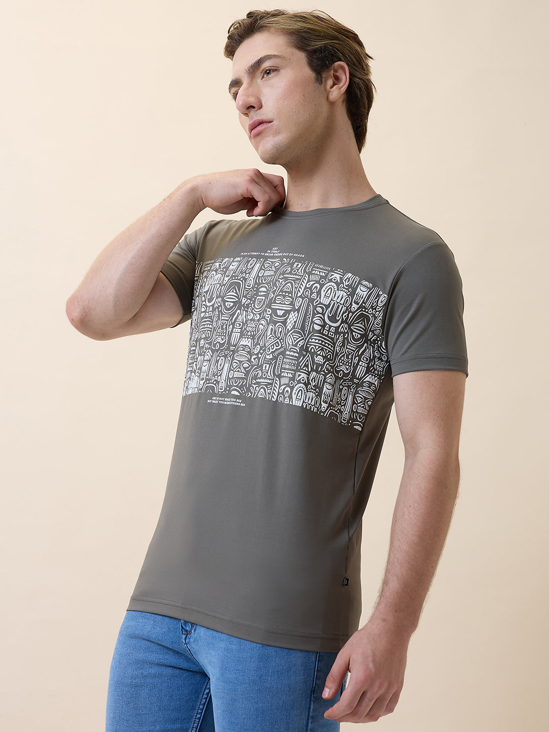Status Quo Men'S Printed Round Neck Half Sleeves Regular Fit T-Shirt
