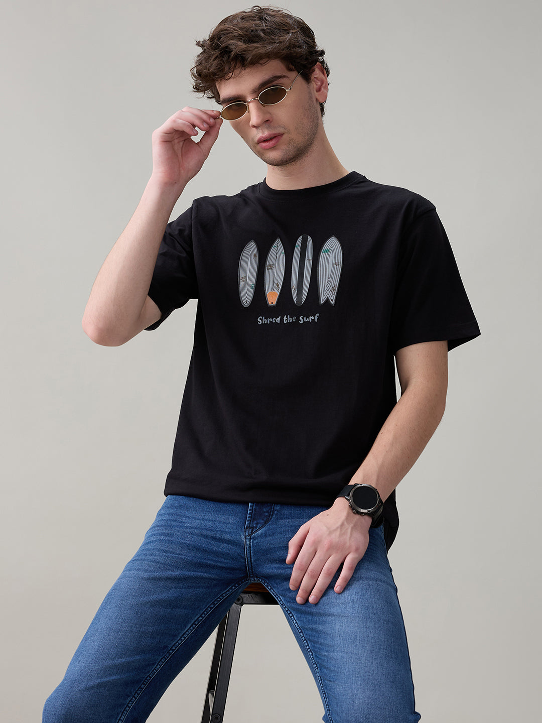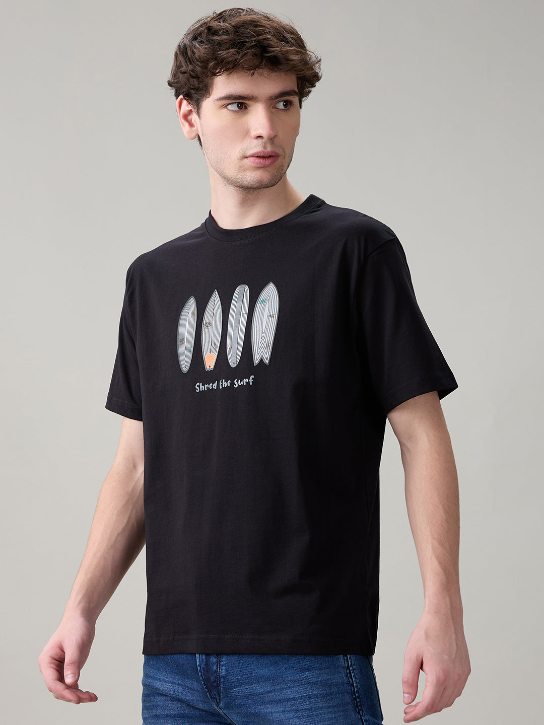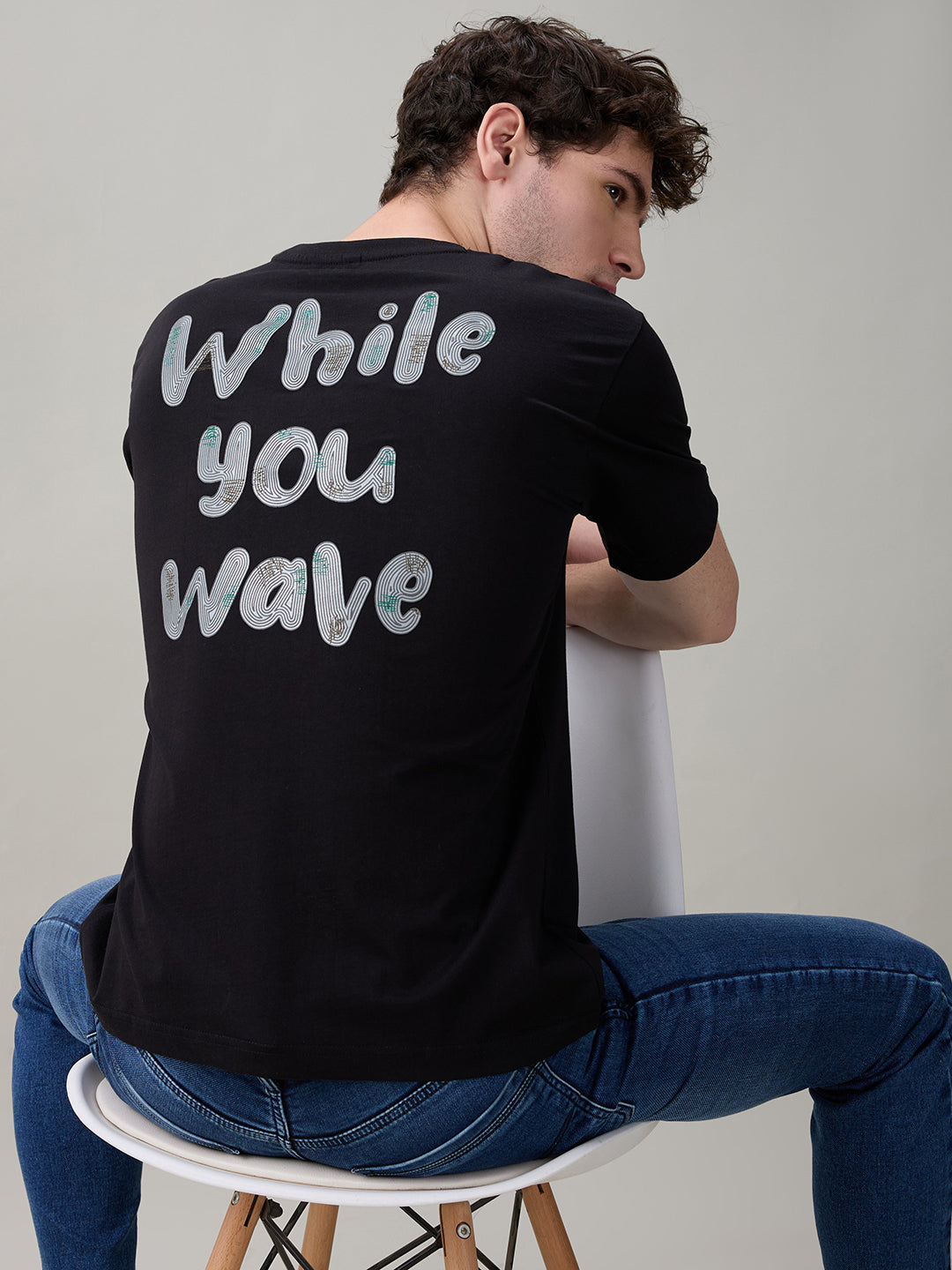 Status Quo Men’s Regular Fit Round Neck T-Shirt with Typography and Graphic Print