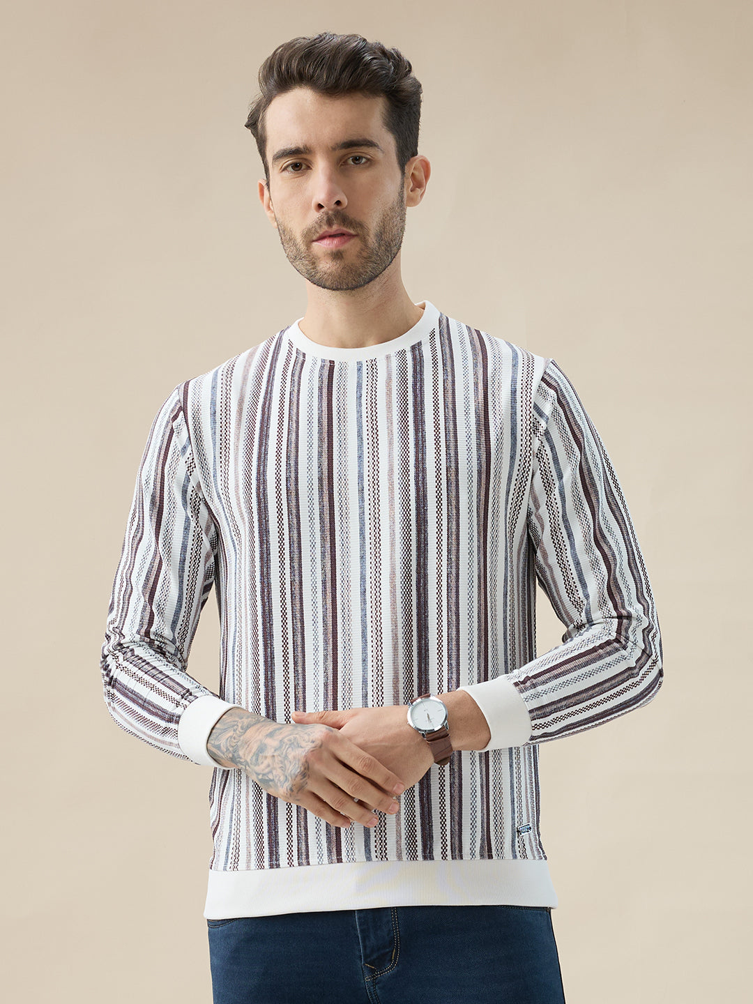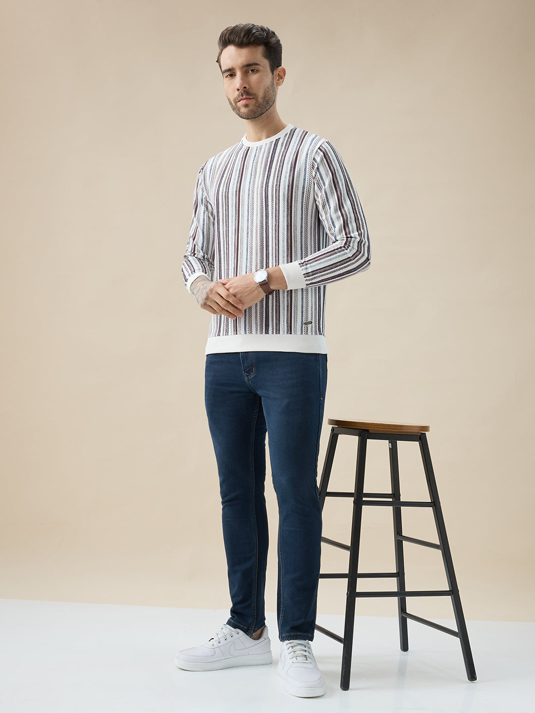Status Quo Men’S Striped Regular Fit Full Sleeve Round Neck T-Shirt