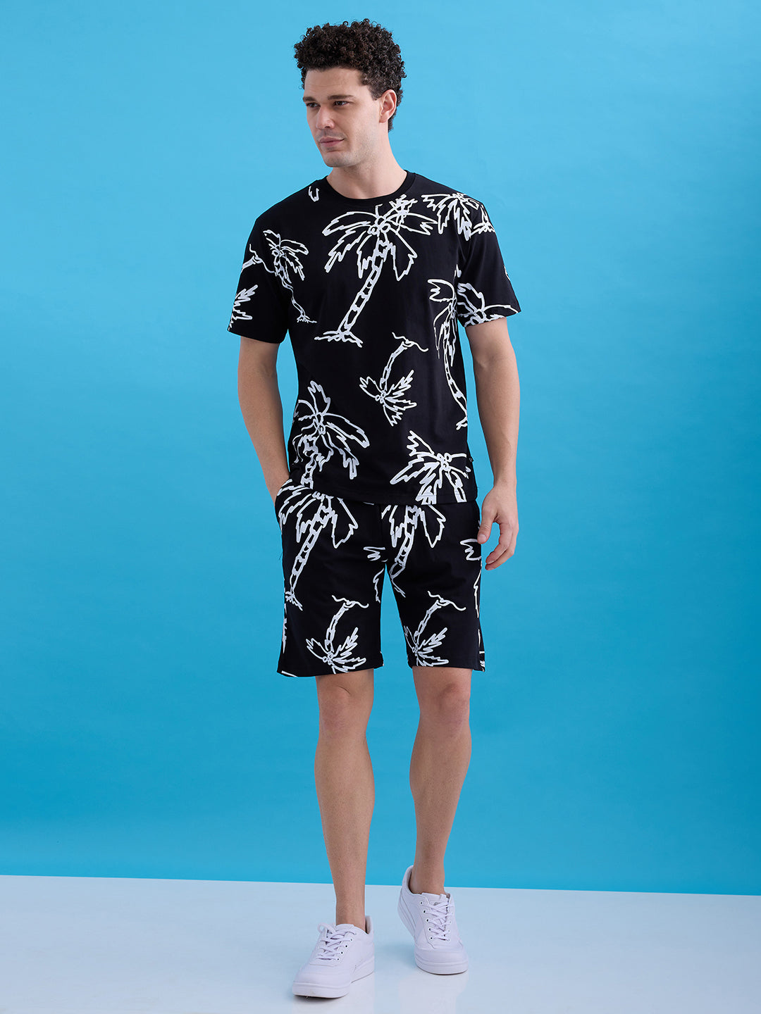 Status Quo Printed Round Neck Regular Fit Coordset with Drawstring